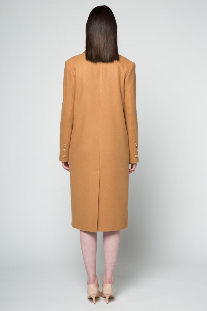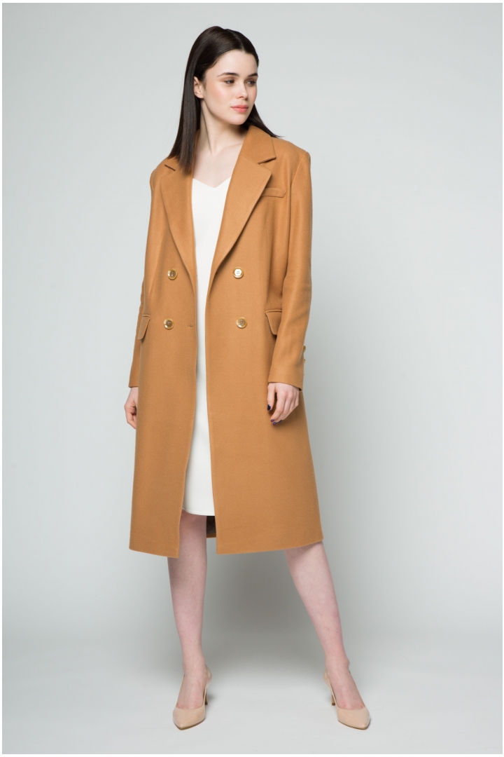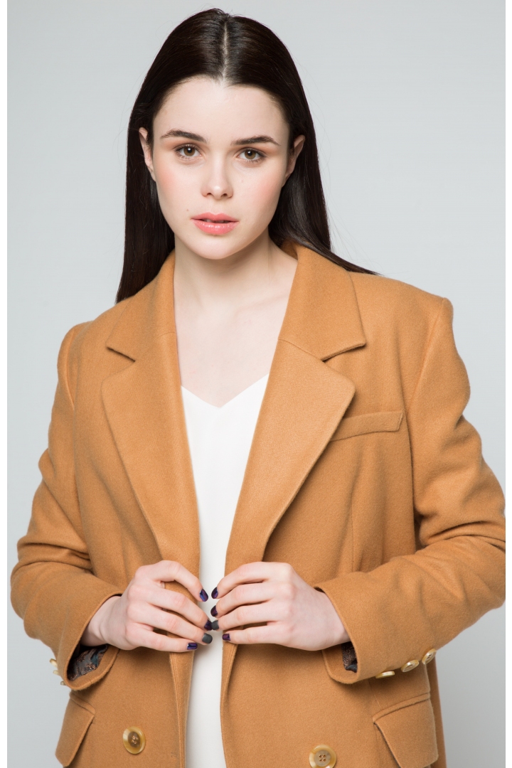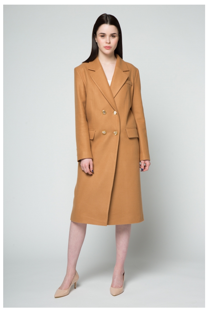 Stylish, elegant midi length coat made of natural wool. The aristocratic colour of camel has won recognition among the elite of society. Katrine KORSUN’s new collection emphasizes the special status of the lady, because each one of us is a queen! The deep V-neck styling adds a special chic to this coat. Add a special scarf or an attention-grabbing brooch to complement the look.