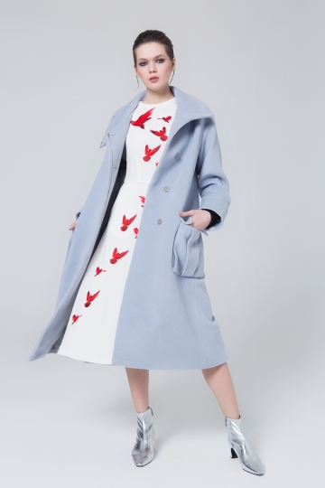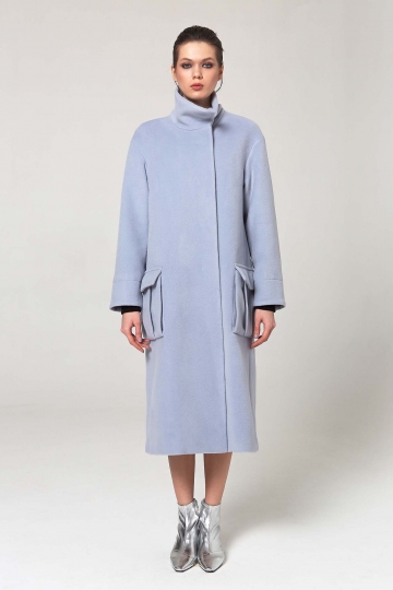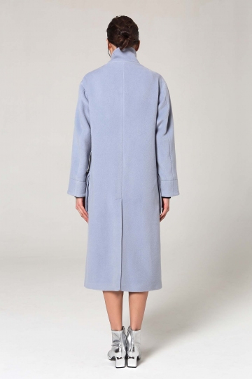 Light Blue Midi-Length Wool Coat