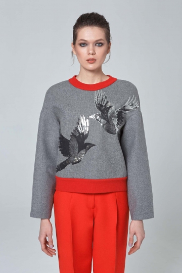 Grey Melange Sweatshirt With Craque Print