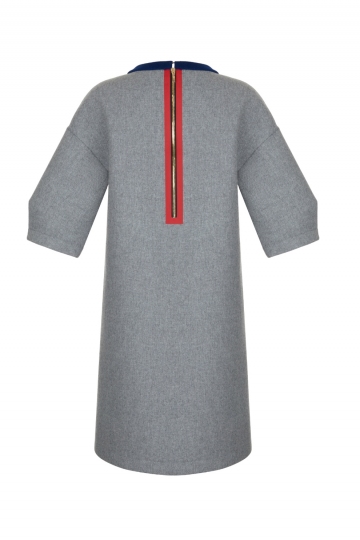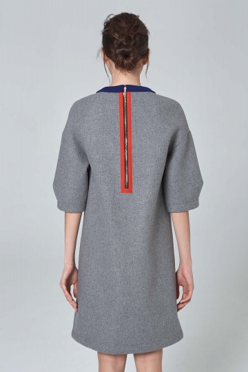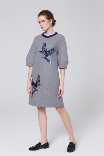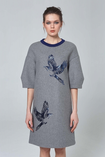 Grey Melange Sequined Dress With Blue Neckline
