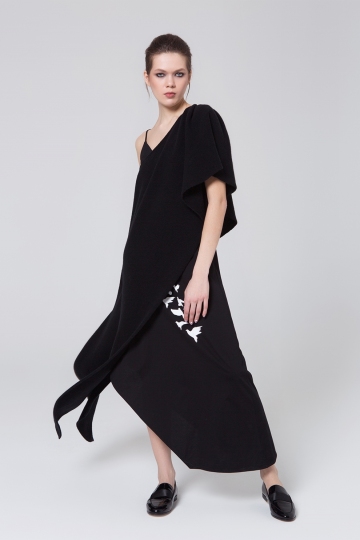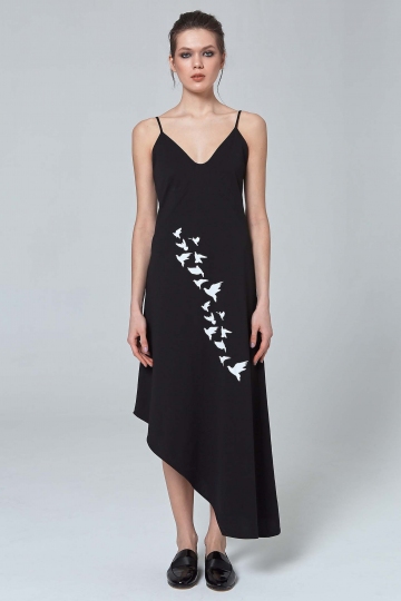 Black Cotton Dress With Print