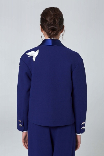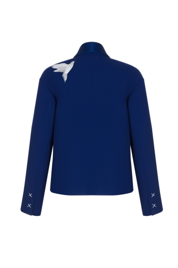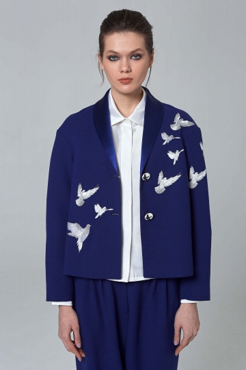 Printed Blue Jacket With Narrow Collar