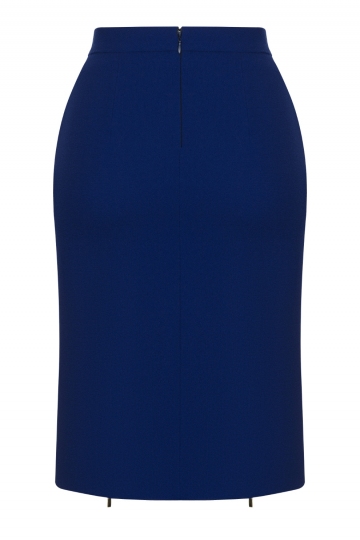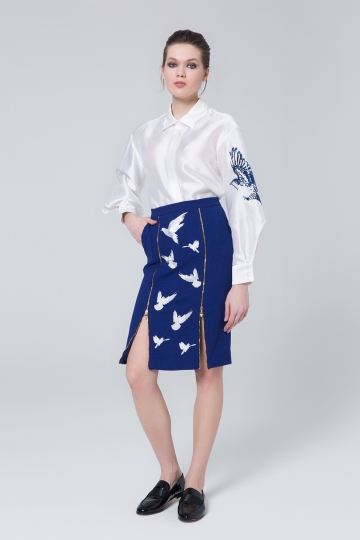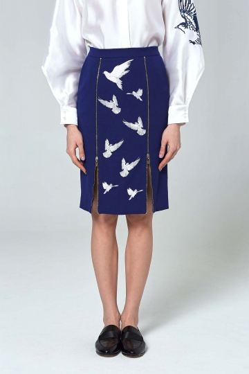 Blue-Embroidered Skirt With Front Zippers