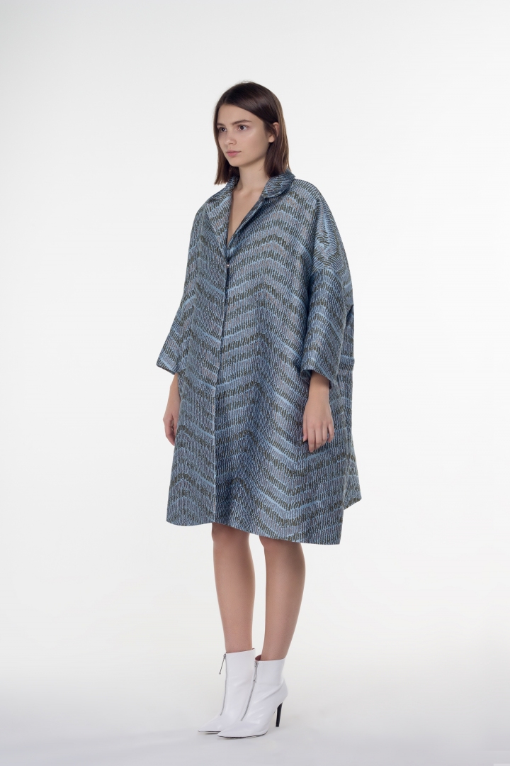 Las principales casas de moda reconocieron unánimemente al modelo de talla grande como la tendencia de 2018-2019. En la colección otoño-invierno KORSUN ofrece a las mujeres de moda un abrigo de jacquard de gran tamaño espectacular. El corte libre destaca la especial sofisticación de la figura femenina. El estampado ondulado con toques de seda de lujo agrega elegancia y brillo al artículo. El forrado de 100% de seda aumenta significativamente la comodidad del abrigo.