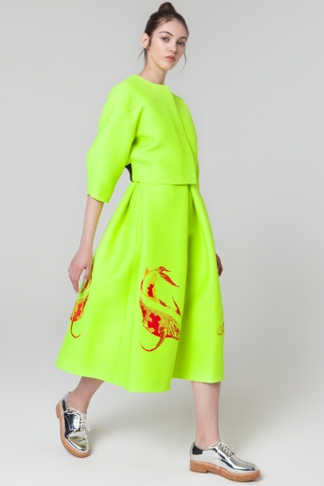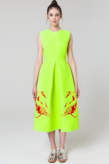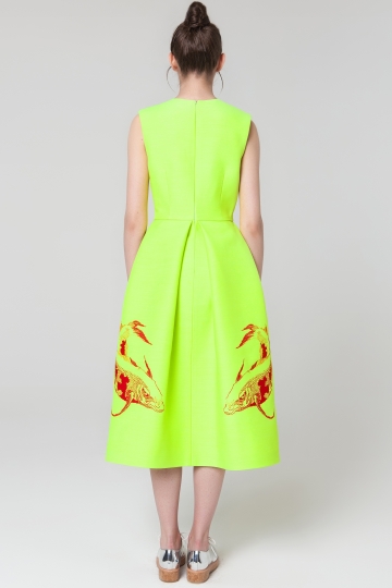 Neon Yellow Sleeveless Dress With Embroidery
