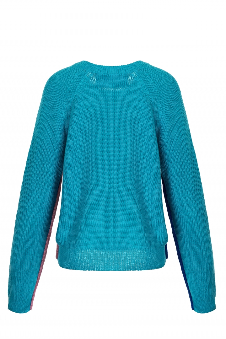 Жизнерадостный оттенок бирюзы, аппликации невиданных цветков и роскошный бленд из шелка и льна в составе - этот джемпер связан, чтобы внести ярких красок в жизнь. Модель отличается уютной круглой горловиной, комфорными длинными рукавами и эластичной вывязанной резинкой по краям. Образ гармонично дополнит озорная юбка-плиссе в оттенке спелого персика и ваша улыбка.